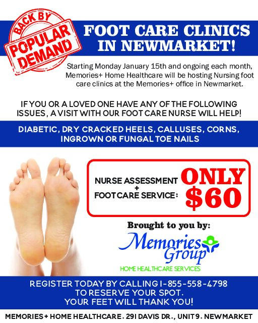 February 15, 2024 @ 10:30 am - 12:00 pm Newmarket Foot Care Clinic Memories Plus Group 291 Davis Drive, Newmarket